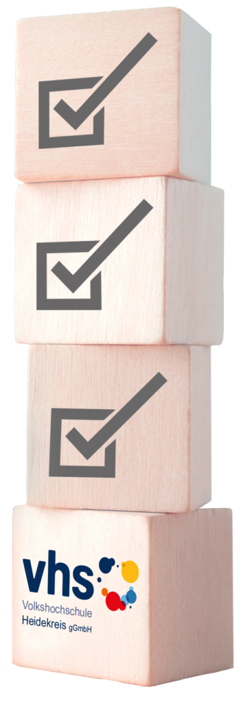 Die VHS Heidekreis ist zugelassene Trägerin nach dem Recht der Arbeitsförderung § 178 SGB III in Verbindung mit der AZAV (Akkreditierungs- und Zulassungsverordnung Arbeitsförderung).